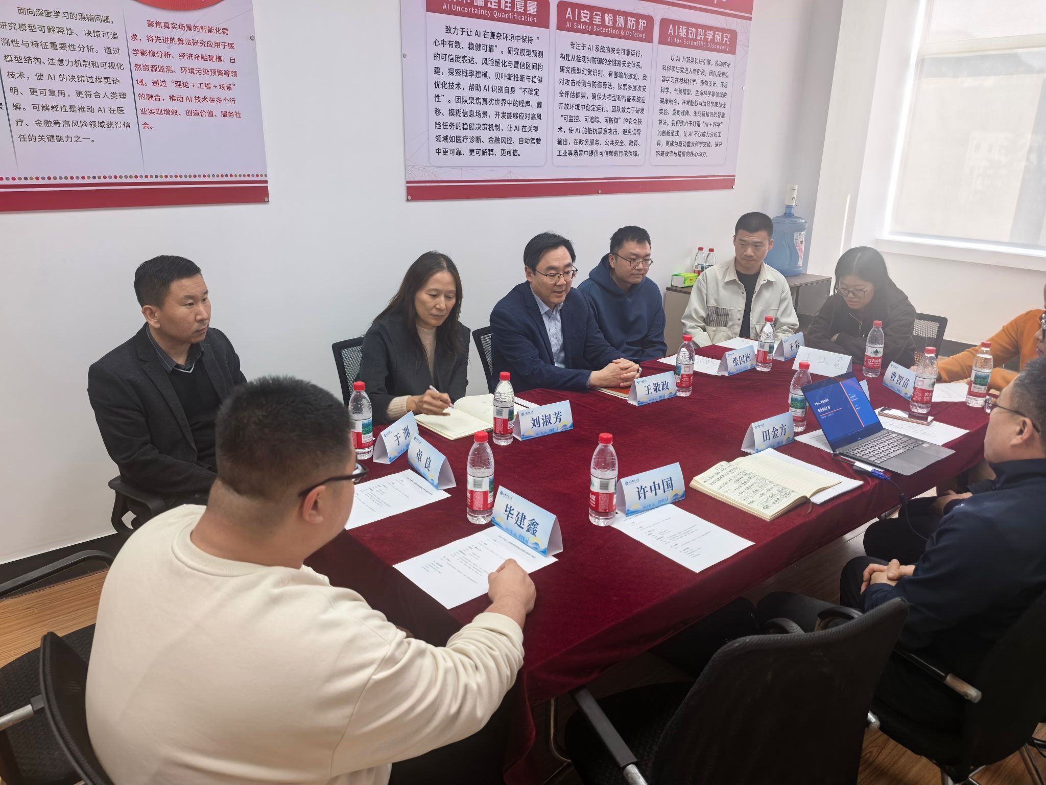 调研期间,严晓东教授围绕实验室概况、研究方向、2025年度建设成效、人才队伍及国际合作等方面作专题汇报。他重点介绍了实验室聚焦公平学习、大模型安全、不确定性量化三大核心方向,致力于构建安全、可靠、可解释的下一代智能系统的总体定位。过去一年,实验室在《PNAS》《中国科学·数学》等特类期刊发表高质量论文8篇,获批国家级、企业级项目4项,总资助金额250余万元,出版前沿教材3部,新引进海内外青年人才5名,形成了涵盖统计学、人工智能、计算机视觉等多学科交叉的研究团队。