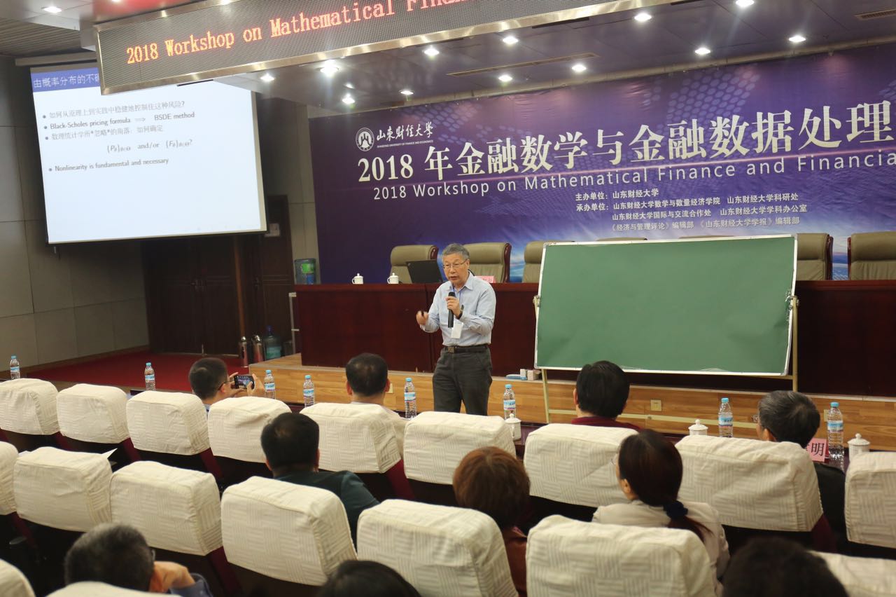 中国科学院院士彭实戈做了题为《Data based nonlinear distributions under robust expectations》的学术报告。彭实戈院士从非线性期望的背景出发,指出非线性期望是稳健控制由概率分布不确定性而造成的风险的一个强有力的工具。通过一个简单的例子,详细地介绍了非线性期望下独立和相同分布的定义,给出了相应的大数定律和中心极限定理,以及与非线性期望相关的概率分布不确定性计算理论,并且展示了该理论在实际金融市场中的应用。
