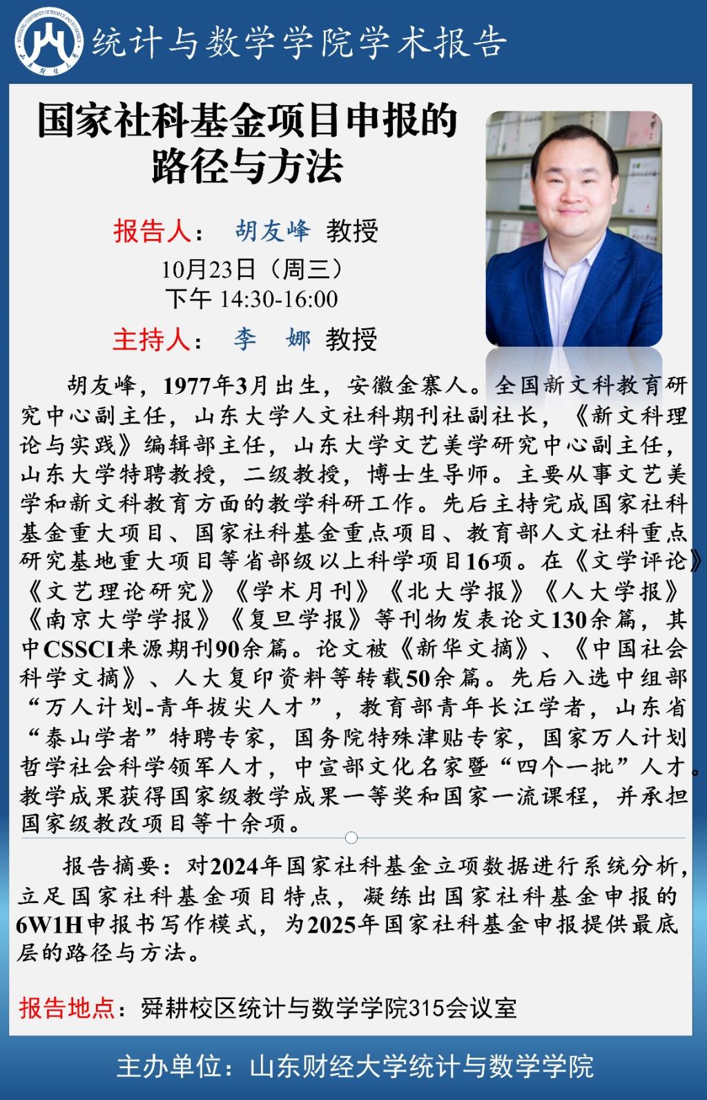 报告人:胡友峰教授(山东大学)