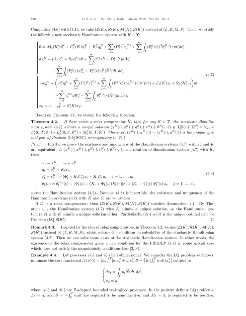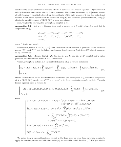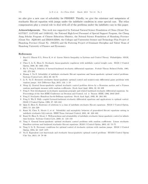 据悉,《中国科学》是我国自然科学研究领域里权威性的学术刊物,英文版IF2016为0.956,刊发的各学科领域最新研究成果得到国际学术界高度的认同和关注。李娜及其合作者研究了一类不定条件下带跳的线性二次随机最优控制问题以及相关随机Riccati方程,提出了“放松补偿子”这一新的元素以代替传统方法中的Riccati方程的解,从而可以在条件放松时避免讨论Riccati方程解的存在唯一性。另外,作者还给出了放松补偿子和Riccati方程解之间的关系,并讨论了一类特殊形式的Riccati方程的可解性。