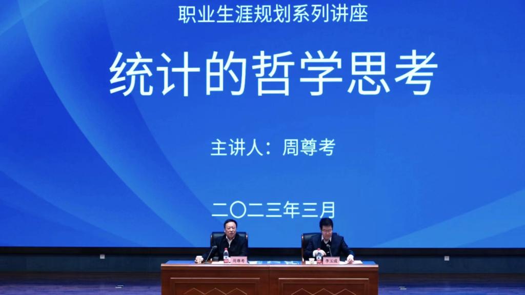3月16日下午3:00,我院在圣井校区图书馆学术报告厅开展《统计的哲学思考》职业生涯规划专题讲座。本次讲座由84级计统专业校友、山东省统计局党组成员、副局长、一级总监、高级统计师周尊考主讲,院党委书记李玉成主持。学院辅导员、2021级、2022级学生共450余人参加。