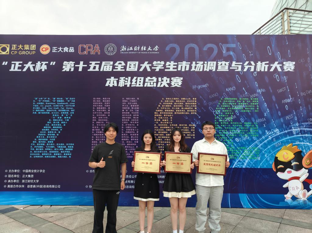 5月24-25日,“正大杯”第十五届全国大学生市场调查与分析大赛本科组总决赛在浙江财经大学落下帷幕。继研究生组斩获两项全国一等奖后,我院本科组再创佳绩。两支本科队伍进入本科组总决赛,均获全国一等奖,我校荣获最佳院校组织奖,这是我校参加该项赛事以来取得的最好成绩!至此,“正大杯”第十五届全国大学生市场调查与分析大赛圆满落幕,我院研究生和本科组共获四项全国一等奖,彰显了学院在创新人才培养工作中的卓越成效。