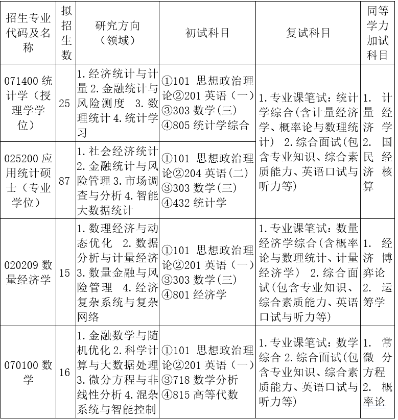 山东财经大学统计与数学学院2026年硕士研究生招生专业目录