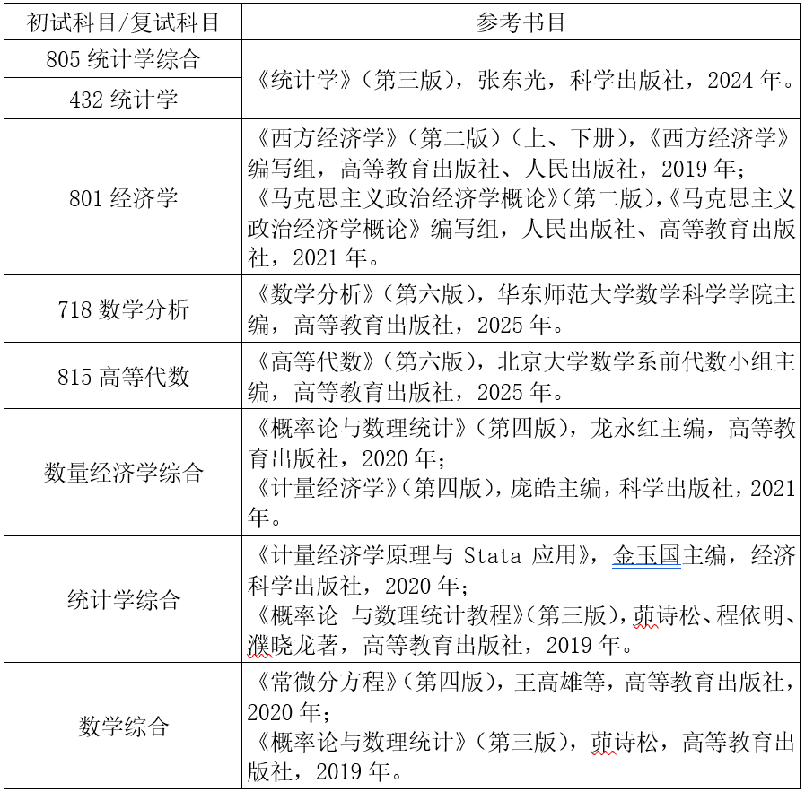 山东财经大学统计与数学学院2026年硕士研究生招生参考书目