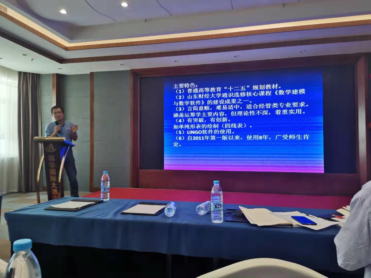 年会分“大会主题报告”、“专题讲座”、“学科建设与交流”、“优秀论文及优秀教材评选”等环节。在“优秀教材评选”环节,王继强老师代表我院向年会报告了近年来出版的“建模技术与数据处理”系列教材的情况,获得国内知名专家们的大力肯定与赞许,四部教材分获一、二等奖。参会老师们纷纷表示年会启人心智,收获丰硕,不虚此行。