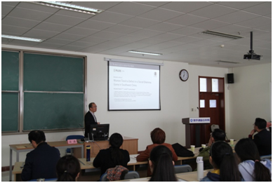 座谈会之前,石磊教授在我校舜耕校区实验楼507《金融量化与保险精算》实验室,作了题为《人类行为决策的实验及理论研究》的学术报告。数学与数量经济学院、统计学院部分师生参加了报告会。报告会由数学与数量经济学院院长安起光教授主持。