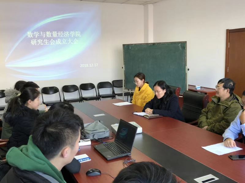 数学与数量经济学院研究生会成立大会于2018年12月17日上午在舜耕校区4号教学楼315会议室顺利举行。学院副院长刘太琳,学院党委副书记陶晓华,研究生辅导员张亚萌及研究生全体成员参加会议。大会由首届研究生会副主席王晖主持。