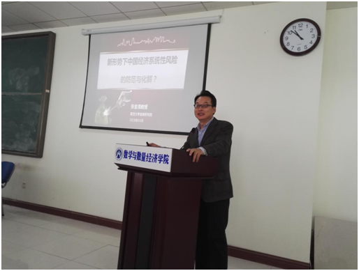 10月20日下午,复旦大学博士生导师张金清教授应邀来我院作题为“新形势下中国经济系统性风险的防范与化解”的学术报告。金融数学、金融工程和金融风险管理团队负责人、金融数学研究所所长朱庆峰副教授及团队成员、学院部分教师以及研究生、本科生到会聆听了报告。山东女子学院经济学院院长沈传河教授、东方学院金融系副主任郭宁、分管科研副院长郝秀梅教授也参加了报告会。报告会由院长安起光教授主持。
