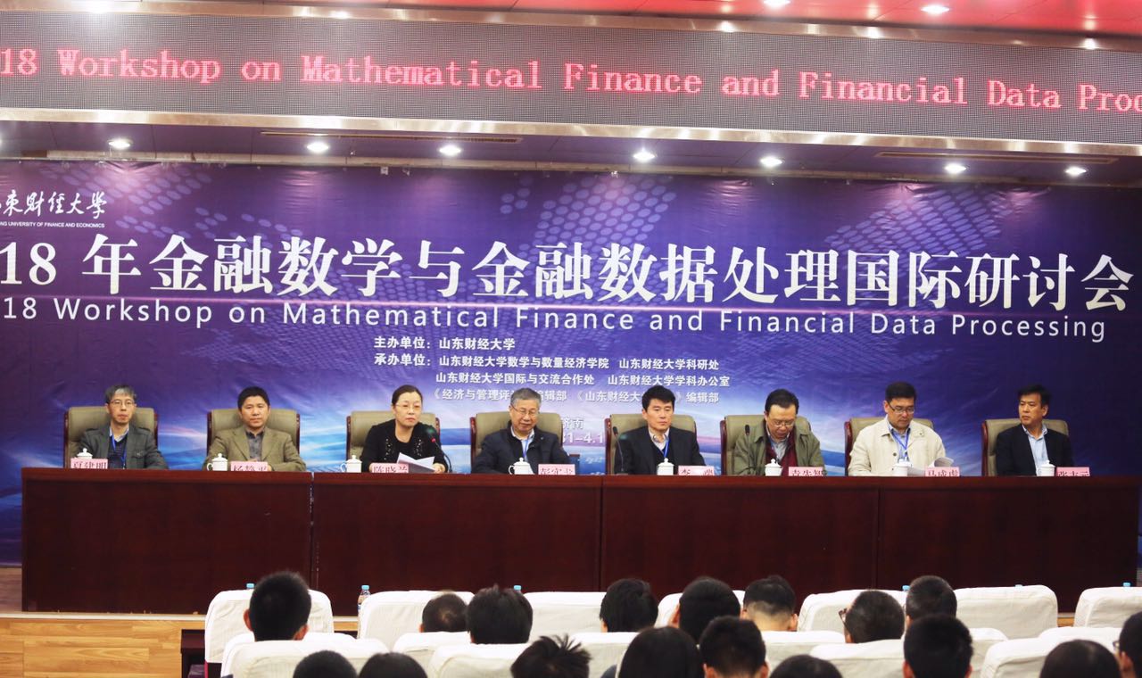 3月31日至4月1日,“2018年金融数学与金融数据处理国际研讨会”在我校舜耕校区举办。来自中国科学院、山东大学、北京大学、复旦大学、同济大学、中国人民大学、中国科技大学、City University of Hong Kong、Loughborough University、Swansea University、University of Macau等国内外近60余所科研院校的代表近200人参加了会议。副校长陈晓兰教授出席研讨会开幕式并致辞。科研处处长张志元教授,数学与数量经济学院、金融学院、保险学院、统计学院、《经济与管理评论》等学校相关部门和学院师生,参加了研讨会。研讨会开幕式由院长安起光教授主持。