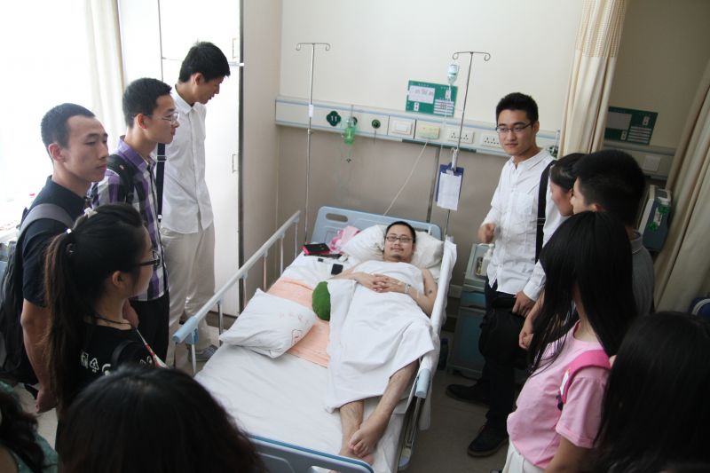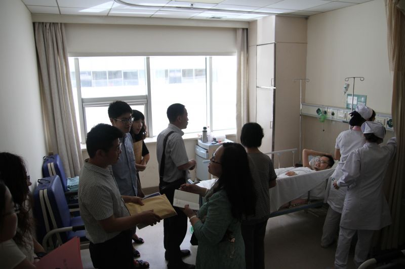 7月1日,正值中国共产党94岁生日,我院党委副书记赵连幸带领我院教师、学生党员代表前往千佛山医院,看望慰问我院2011届毕业生吕国昌,送去了母校的关心和慰问,并鼓励吕国昌增强信心,配合医生积极治疗,争取早日康复。