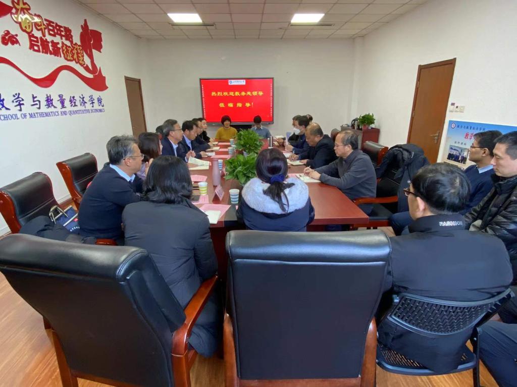 陈保启处长在学期即将结束之际对各位老师一学期的辛勤工作表示了感谢,对学院在学科建设和教学科研上取得的成绩表示了充分肯定。同时陈处长介绍了此次调研的目的和主要内容,他表示,立足高等教育发展新阶段,数学作为基础学科,是财经类高校“新文科”建设的重要依托,关系到学生发展的上限。在新背景下如何提高数学的教学水平,是学校下一步教学工作开展的重点,更是我们下一步工作的重要导向。