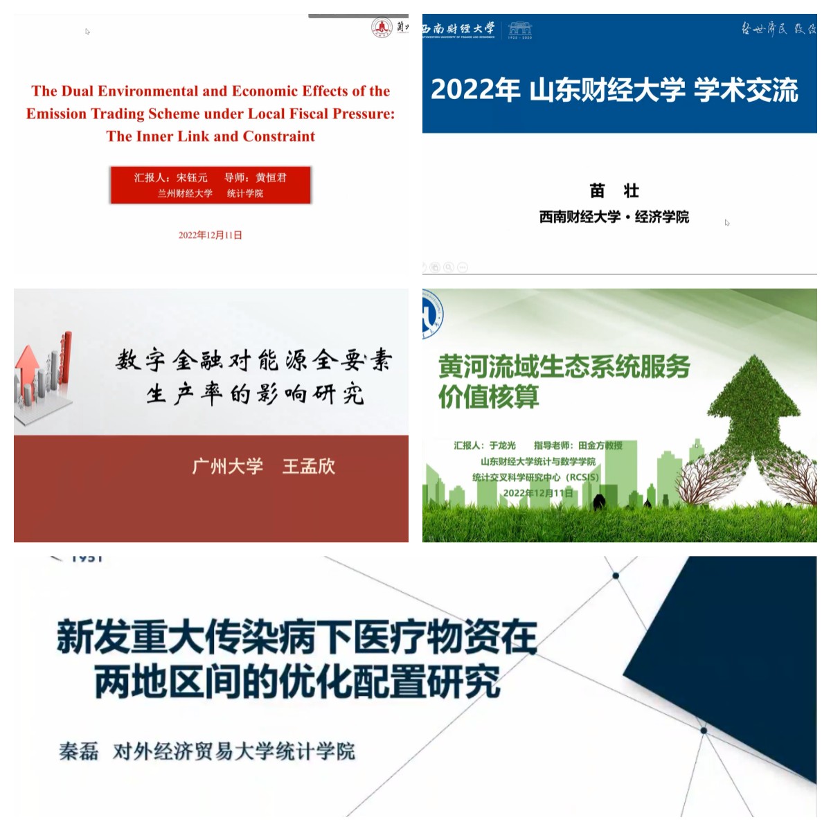 生态环境统计分组报告:兰州财经大学统计学院教授、院长、博士生导师黄恒君Deep learning prediction of PM2.5 through self-weighted loss based on VMD;西南财经大学教授,博士生导师,博士后合作导师,西南财经大学数字经济研究中心副主任苗壮《非参数方法在面向全变量环境全要素生产率分解的应用》;广州大学金融研究院教授,博士生导师王孟欣《数字金融对能源全要素生产率的影响》;对外经济贸易大学统计学院教授、博士生导师。国家社科基金重大项目首席专家秦磊新发重大传染病下医疗物资在两地区间的优化配置研究;山东财经大学教授、博士生导师。统计交叉科学研究中心主任兼统计与数学学院副院长田金方《黄河流域生态系统服务价值核算》。(审核:李玉成)