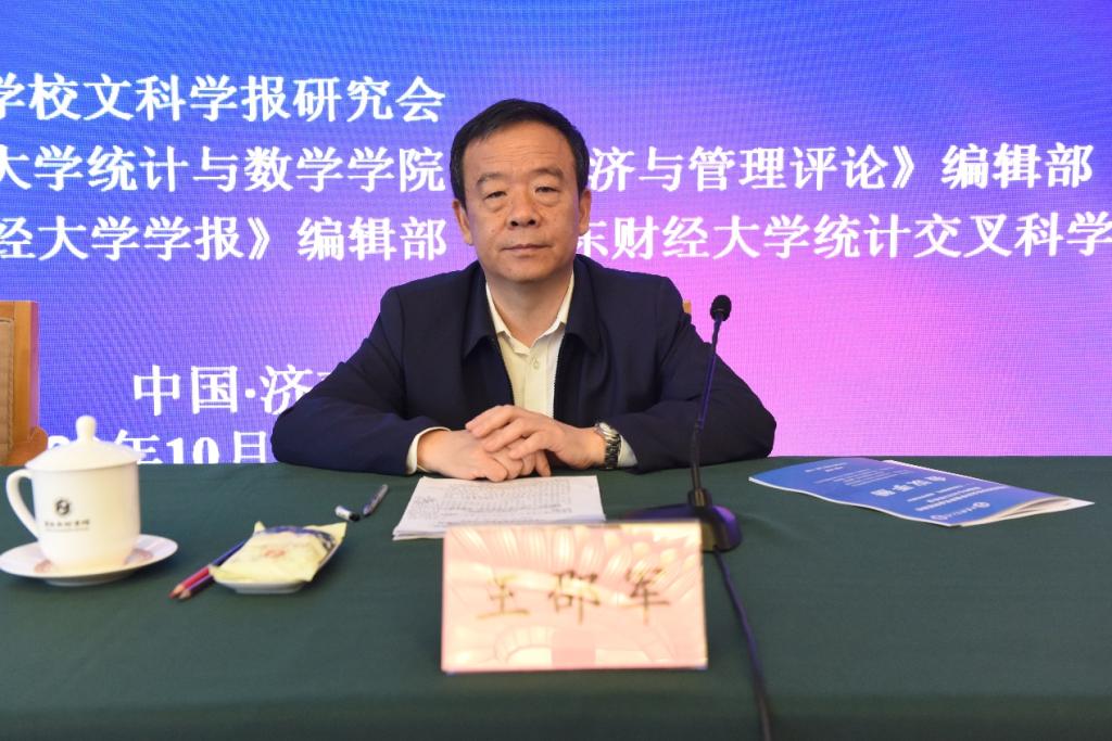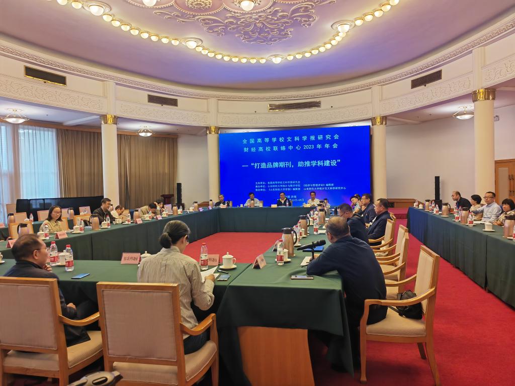 10月13-15日,由全国高等学校文科学报研究会主办,统计与数学学院、《经济与管理评论》编辑部联合承办,《山东财经大学学报》编辑部、统计交叉科学研究中心联合协办的全国高等学校文科学报研究会财经高校联络中心2023年年会在济南市南郊宾馆成功召开。校党委书记王邵军出席开幕式并讲话。全国高等学校文科学报研究会理事长、《北京大学学报(哲学社会科学版)》常务副主编刘曙光,上海财经大学期刊社社长郑春荣等专家学者受邀出席大会并作学术分享。本次年会以“打造品牌期刊,助推学科建设”为主题,来自全国财经高校的60多家财经期刊的130余名代表参加大会。统计与数学学院院长安起光出席大会并主持特邀报告环节,统计交叉科学研究中心主任兼统计与数学学院副院长田金方主持开幕式。