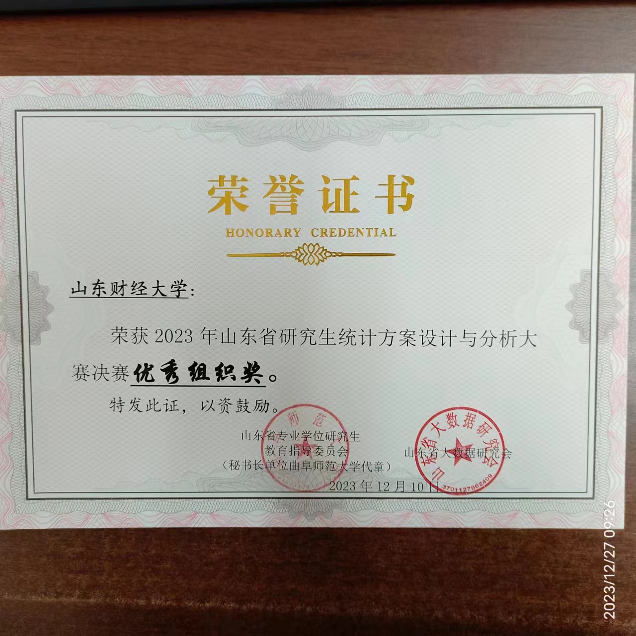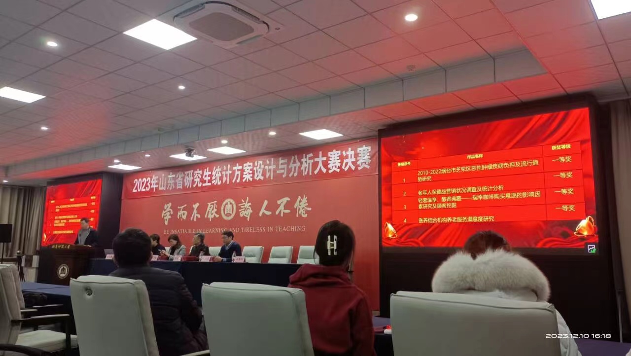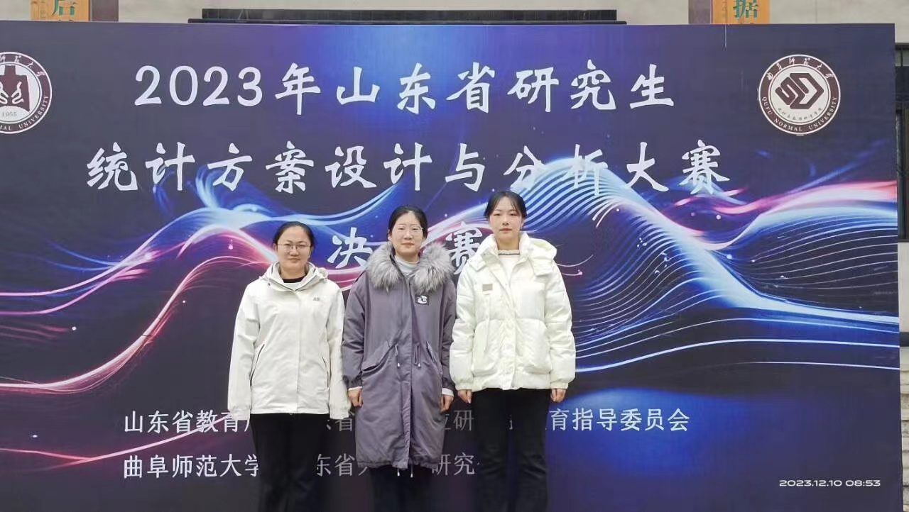 近日,2023年山东省研究生统计方案设计与分析大赛决赛在曲阜师范大学落下帷幕,我院参赛研究生团队获得一等奖3项、二等奖2项、三等奖7项,杨冬梅、刘爱芹、孔凡超、万道侠四位老师荣获优秀指导教师称号,山东财经大学获颁优秀组织单位奖。