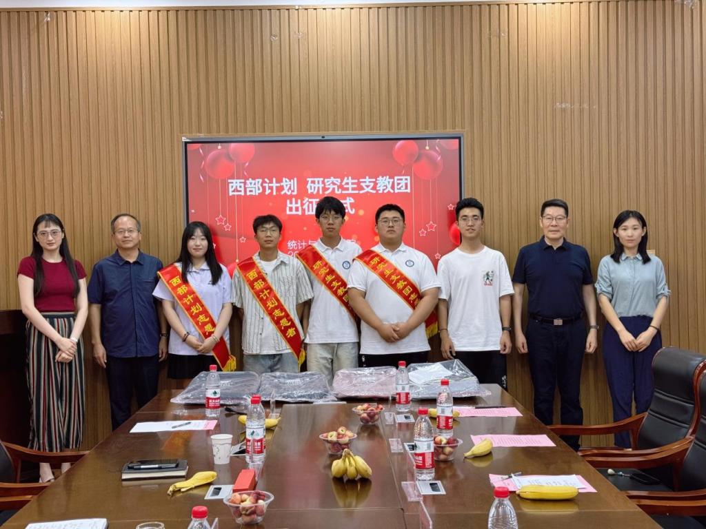6月12日上午,统计与数学学院在燕山校区会议室举行“西部计划、研究生支教团成员出征仪式”。学院党委书记李玉成、党委副书记杨德嵋、团委书记张秀萍、学工办主任王京姝,2024年大学生志愿服务西部计划志愿者唐舟、张叶茂,山东财经大学第26届研究生支教团成员康峰鸣、高文采共同交流,第24届研究生支教团成员李泰棒参加了此次活动。