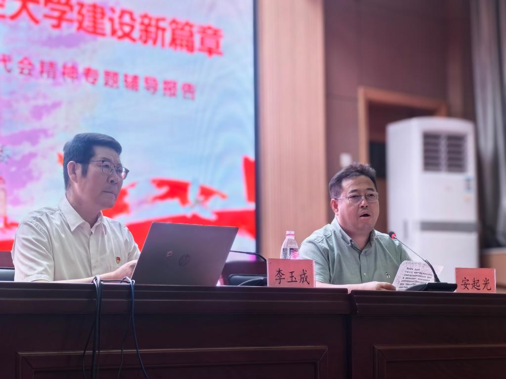 会上,李玉成就校党委书记查玉喜同志所作的题为《凝心聚力 接续奋斗 奋力谱写新时代高水平财经大学建设新篇章》和校纪委工作报告进行了详细解读,重点围绕大会主题、六年来的工作回顾、学校面临的新机遇和新挑战、今后五年的发展思路与工作举措、全面加强党的建设等五个方面进行了深入辅导,使学院师生能够更加深刻全面领会把握了学校第二次党代会的精神实质和“一一三九”发展思路、目标要求。