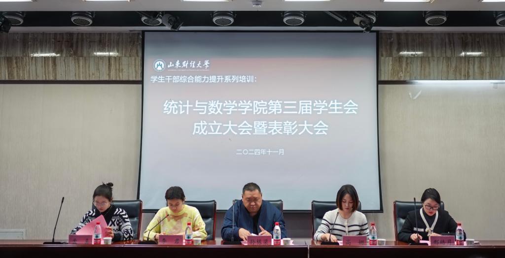 11月21日下午,统计与数学学院第三届学生会成立大会暨表彰大会在圣井校区5106教室隆重举行。我院党委副书记孙栋梁、圣井校区辅导员出席本次大会,第三届学生会成员和各年级学生干部参加。