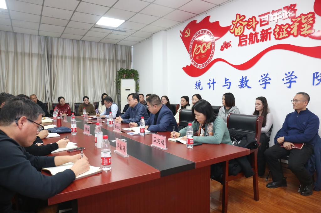 在听取大家的工作汇报后,王敬政对学院工作给予充分肯定,结合学校整体发展目标,指出了工作中的短板和不足,提出了具体工作要求。他强调,学院拥有较好的学科基础,具备巨大的发展潜力,下一步要着重转变工作作风,进一步提升团队凝聚力和战斗力。一是要推动党建与业务深度融合,优化系部设置,充分发挥党支部战斗堡垒作用,结合巡察整改意见,建章立制,立行立改,切实抓好巡察整改落实工作。二是要加强有组织的科研,紧紧围绕国家和山东重大战略需求,充分利用现有学科平台和良好基础,为服务山东经济社会发展作出应有贡献。三是要在学位点建设上取得新突破,进一步梳理教师队伍,组建团队,整合资源,发挥优势,积极投入到学位点申报等工作中,不断提升学院的学科影响力。四是要坚持人才强院战略,加大高层次人才引进力度,拓宽人才引进渠道,处理好人才存量与增量的关系,做好加法,不断优化人才队伍结构,提升学院整体办学实力。五是要发挥好统计学、数学等理工学科优势,为经管学科赋能,深度思考人工智能为教育教学带来的机遇与挑战,聚焦就业市场需求,优化教育教学内容与形式,培养适应新时代需求的高素质人才。六是要聚焦学生成长成才,在保底线、重引导、强队伍、守纪律方面下功夫,统筹好安全与发展的关系,高度关注学生心理健康,给予学生充分关怀;加强研究生科研训练,提高科研产出,抓好本科生教育培养黄金期,帮助学生做好职业生涯规划;做好学生干部和辅导员队伍建设,搭建交流学习平台;坚决树立底线思维,守好纪律红线。