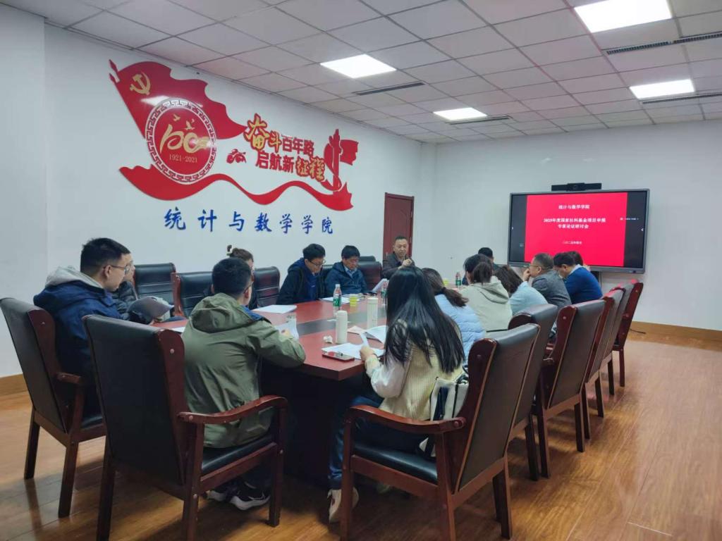 为切实加强2025年度国家社科基金项目申报质量,持续优化申报成果的学术深度与创新性,4月13日上午,统计与数学学院在舜耕校区4号楼315会议室举办了2025年度国家社科基金项目申报专家论证研讨会。会议邀请中国人民大学赵彦云教授、天津财经大学杨贵军教授、江西财经大学王开科教授担任论证专家,统计与数学学院拟申报2025年度国家社科基金项目的教师及学院国家社科基金申报工作专班成员参加会议。研讨会由院长田金方主持。
