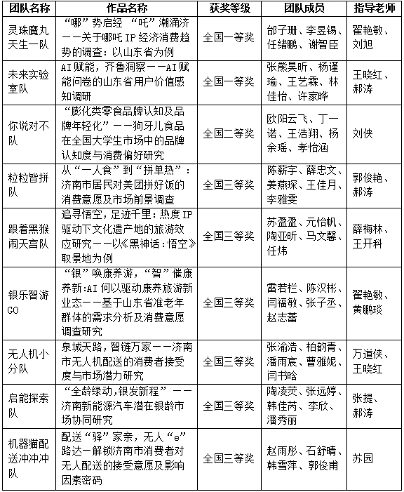 学校本科组在本次比赛中,报名人数达到1140人,组成143支参赛团队。经过激烈比拼,翟艳敏、刘旭老师指导,邰子珊、李昱锡、任绪鹏、谢智臣组成的“灵珠魔丸天生一队”和王晓红、郝涛老师指导,张熊昊昕、杨谨瑜、王艺霖、林佳怡、许家晔组成的“未来实验室队”挺进总决赛并获全国一等奖。学院还荣获全国二等奖1项、三等奖7项,山东省赛一等奖12项、二等奖5项、三等奖5项,获奖层次和数量均创历史最优。