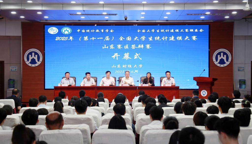 6月7日,2025年(第十一届)全国大学生统计建模大赛山东赛区答辩赛在我校成功举办。山东省统计局党组成员、副局长、山东省统计学会会长傅相国,山东财经大学党委委员、副校长王敬政出席开幕式并致辞。开幕式由统计与数学学院院长田金方主持。山东省统计局、国家统计局山东调查总队相关领导,学校团委负责同志、统计与数学学院领导班子成员,省赛评审专家,35所高校参赛队伍及带队教师等300余人参加了开幕式。