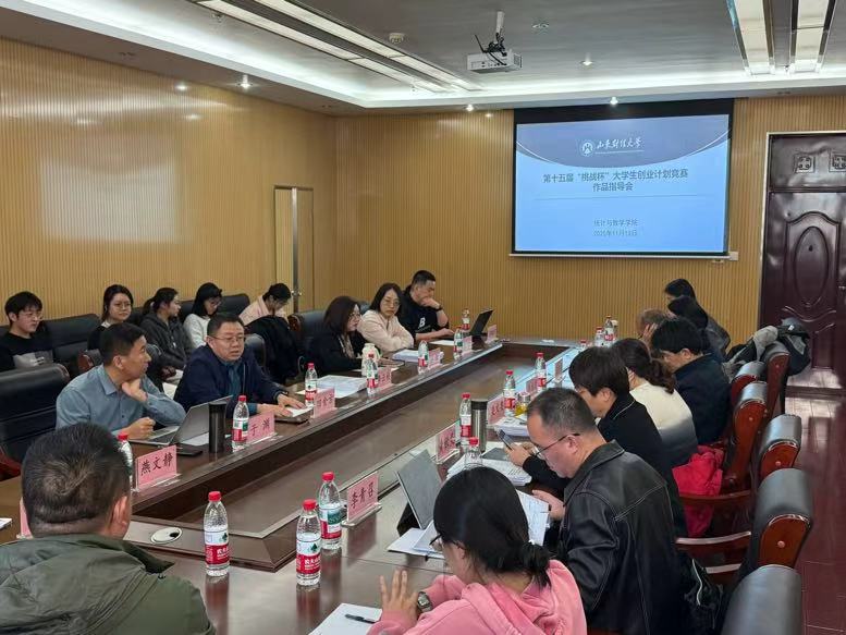 为全面提升“挑战杯”参赛作品质量,培育学生创新创业能力,11月13日下午,统计与数学学院第15届“挑战杯”大学生创业计划竞赛作品指导会在舜耕校区实验楼505教室成功举行。学院院长田金方、党委副书记李云枝、各系主任、全体指导老师及参赛学生团队共同参会。会议由教授委员会委员王怡教授主持。
