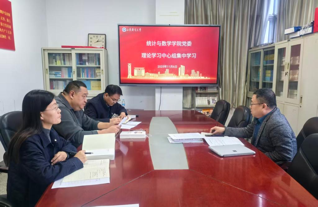 2025年11月6日,统计与数学学院党委理论学习中心组召开集中学习会,专题学习习近平总书记在党的二十届四中全会上发表的重要讲话精神和全会审议通过的《中共中央关于制定国民经济和社会发展第十五个五年规划的建议》。会议由学院党委副书记、院长田金方主持,学院全体班子成员参加。