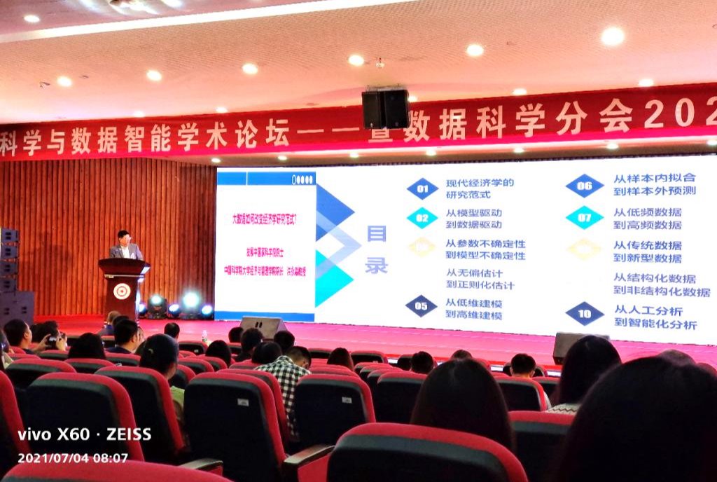 7月3-4日,数据科学与数据智能学术论坛——暨中国优选法统筹法与经济数学研究会数据科学分会2021学术年会在贵州财经大学隆重召开。本次论坛由华东师范大学统计交叉科学研究院、中国优选法统筹法与经济数学研究会数据科学分会和全国工业统计学教学研究会主办,贵州财经大学大数据统计学院承办。来自北京大学、中国科学院大学、中国人民大学、厦门大学、上海财经大学、美国爱荷华大学、香港中文大学等国内外众多知名高校的150余位专家、学者和博士生参加了本次论坛。副校长陈晓兰教授、院长李国锋教授应邀带队参加了本次论坛,并分别主持了大会邀请报告和博士论坛专场报告。