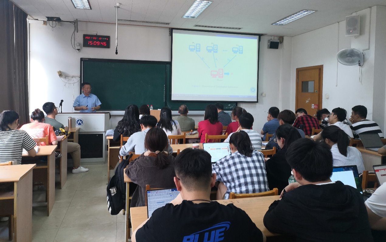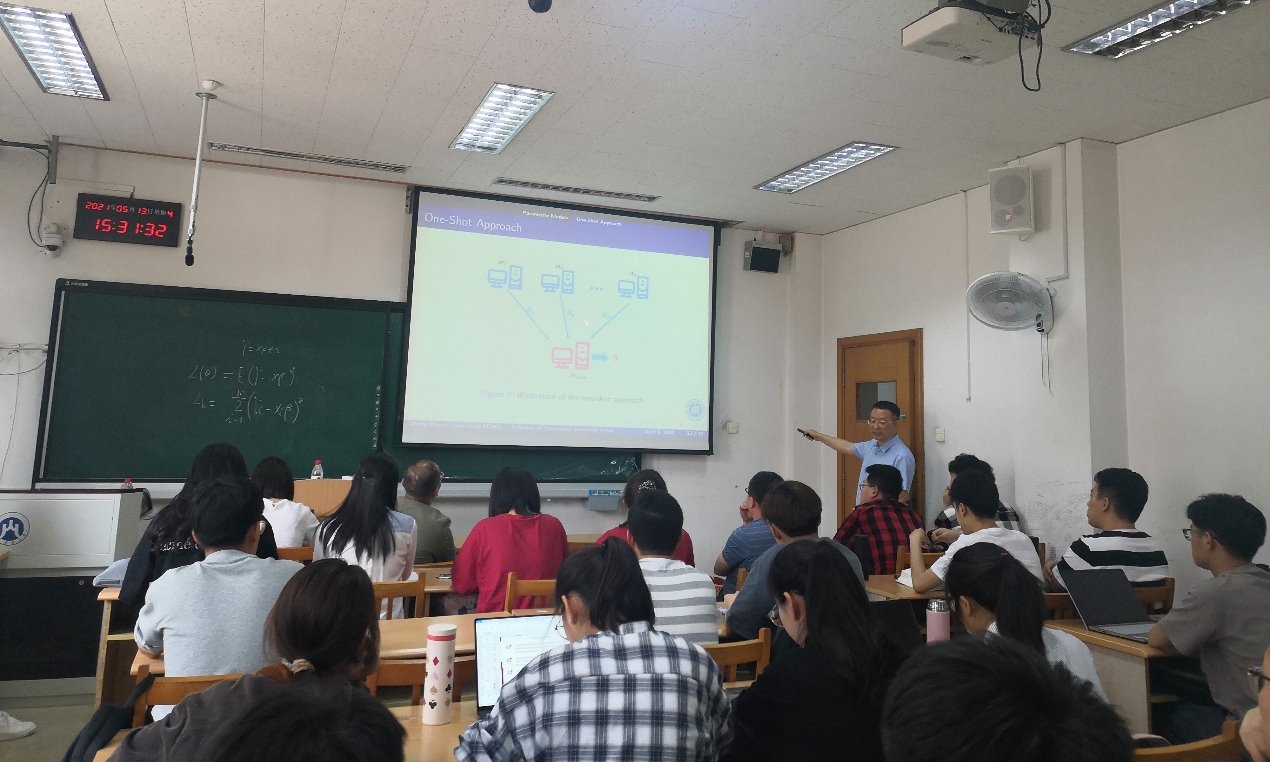 报告会上,张日权教授首先重点概述了什么是分布式统计计算,以及在大数据背景下研究分布式计算的意义,并结合案例列举了分布式计算在电子商务、大容量数据处理过程中的应用。随后,张教授围绕参数模型、非参数模型以及其他角度,对现有的分布式统计研究方法和成果展开了详细介绍,包括One-Shot方法、迭代方法、局部光滑法、Bootstrap法等。最后,张日权教授对分布式统计研究现状做了系统总结,并展示了最新具有代表性的研究成果,为大家研究分布式统计提供了重要参考。