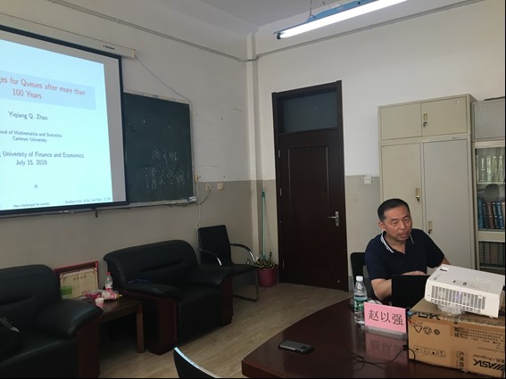 应我院邀请,加拿大卡尔顿大学理学学部副主任、终身教授赵以强教授于7月14日-7月15日到我院进行交流。交流期间,赵以强教授做客“百脉大讲坛”,为统计学院部分师生带来了题为“New Challenges for Queues after more than 100 Years”的专题报告。报告中,他从排队论的诞生开始引入,介绍了排队的发展历程以及经典排队模型。同时也探讨了大数据等新技术的发展,对排队模型带来的挑战及机遇。