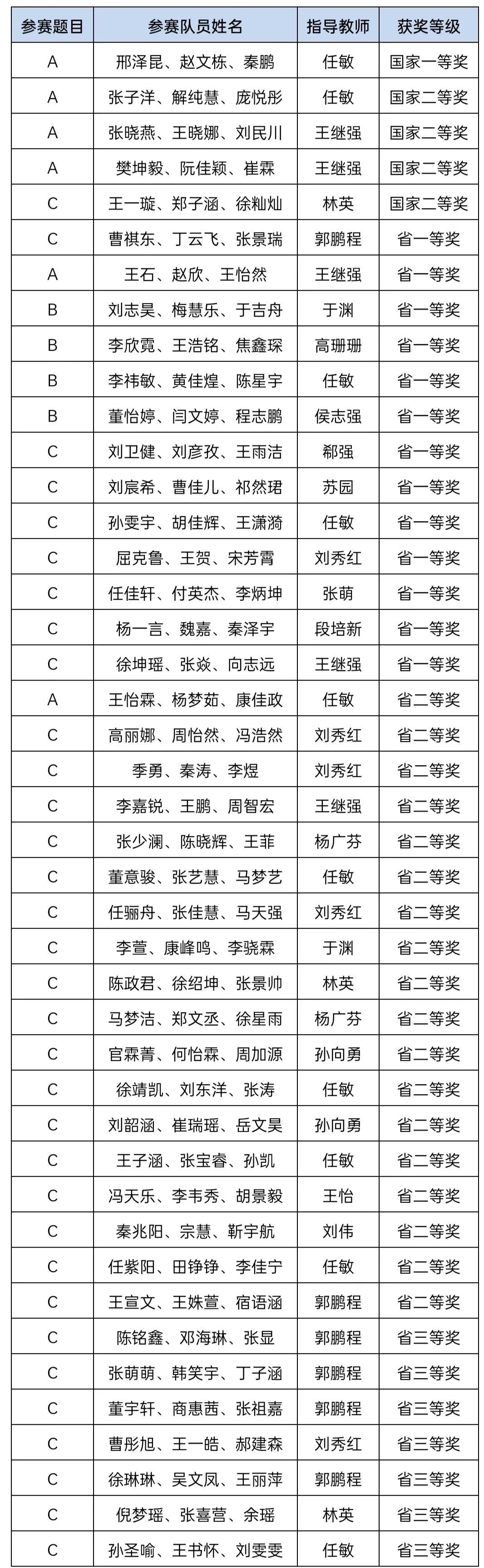 日前,2022年全国大学生数学建模竞赛(CUMCM)结果公布,我校共获奖43项,其中,国家一等奖1项、国家二等奖4项,省级一等奖13项、省级二等奖18项、省级三等奖7项。获奖数量和质量再创学校参加该项赛事以来新高。