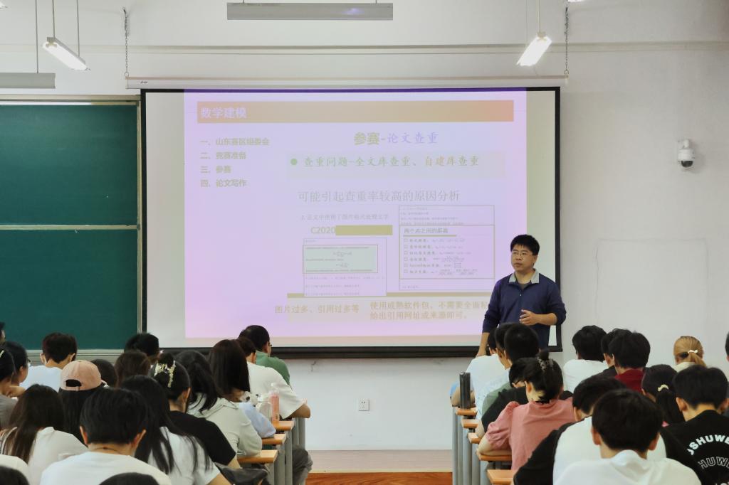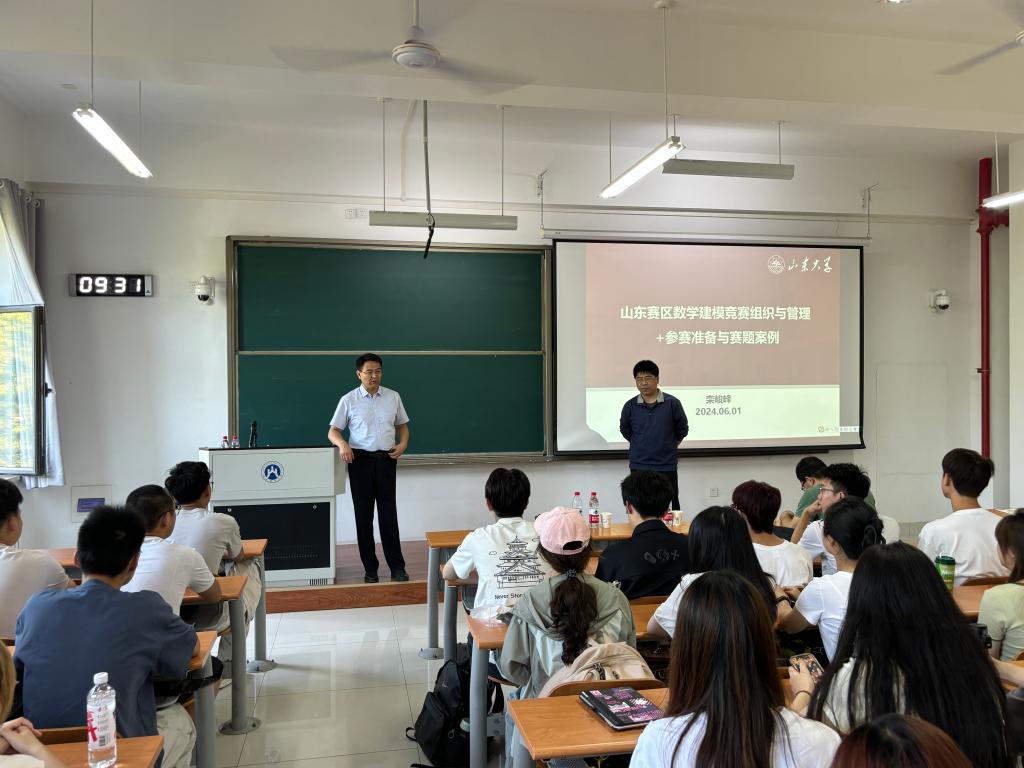 6月1日,山东大学计算机科学与技术学院副教授、软件教研室主任栾峻峰应邀为我院师生作了题为“数学建模国赛参赛准备及运输问题建模案例”的专题辅导。报告由我院副院长郭洪峰教授主持,王继强教授、学校参加数学建模比赛队伍以及我院部分学生聆听了报告。