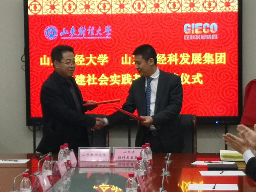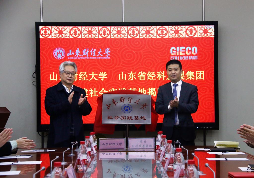 仪式上,副校长胡文波和山东经科发展集团董事长徐立共同为社会实践基地揭牌,我院院长安起光和山东省经科发展集团董事长徐立签订了共建协议。