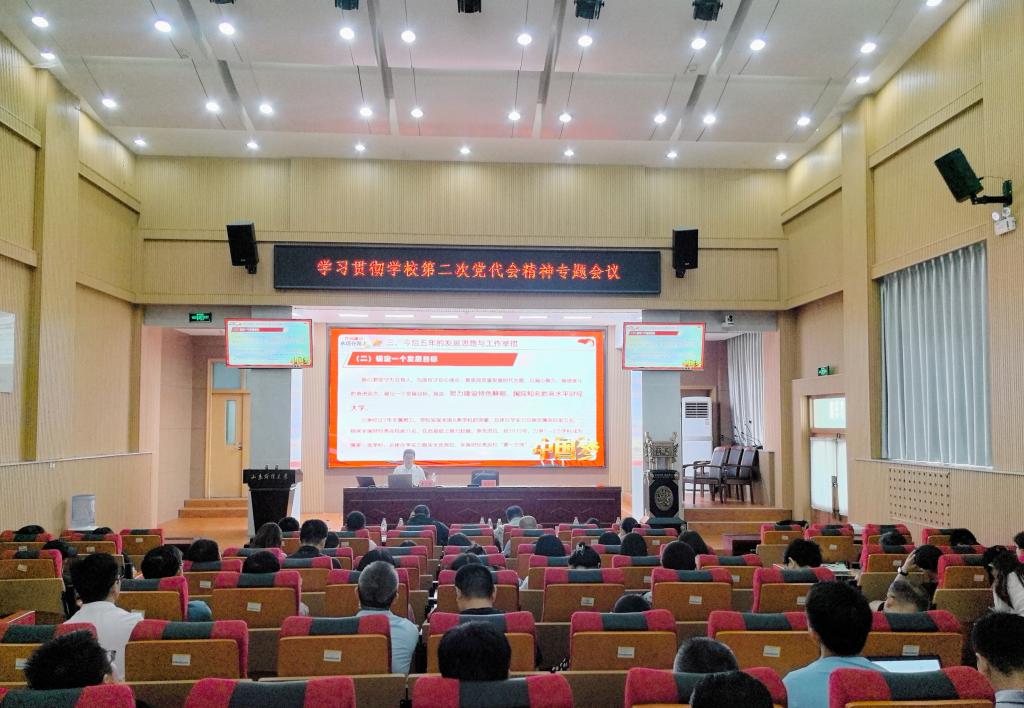 6月6日上午,统计与数学学院召开学习宣传贯彻学校第二次党代会精神专题会议。学院党委书记李玉成结合“两委工作报告”作专题辅导,会议由学院党委副书记、院长安起光主持。学院全体教职工和学生代表参加会议。