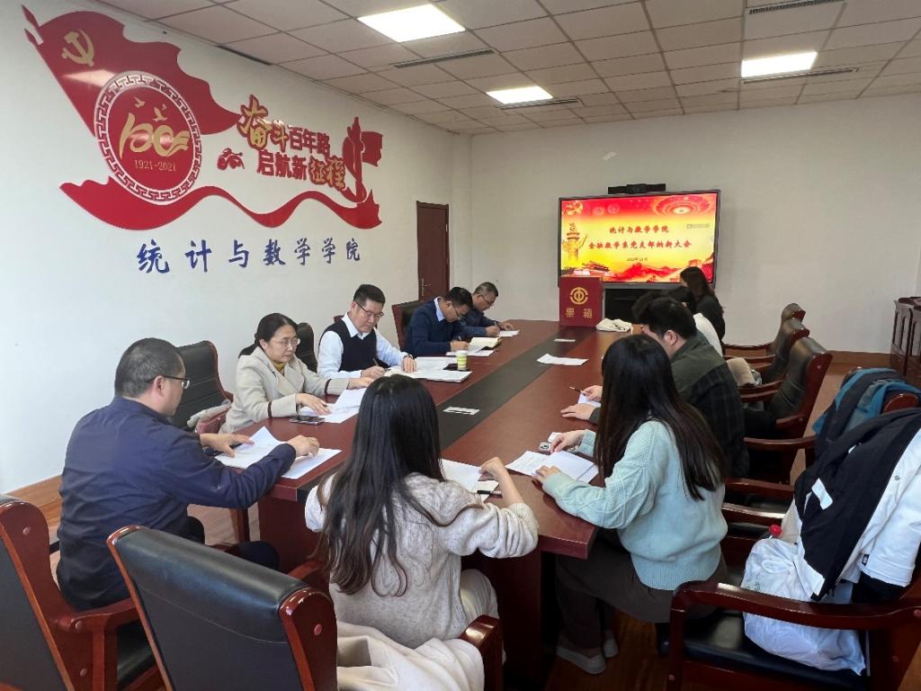12月7日下午,统计与数学学院金融数学系党支部在舜耕校区学院315会议室召开党员支部大会,研究接收青年预备党员等事项。会议由副院长、党支部书记郭洪峰主持,金融数学系党支部全体党员参加。学院党委书记李玉成参加会议并与全体党员深入交流了加强基层党组织建设有关工作。