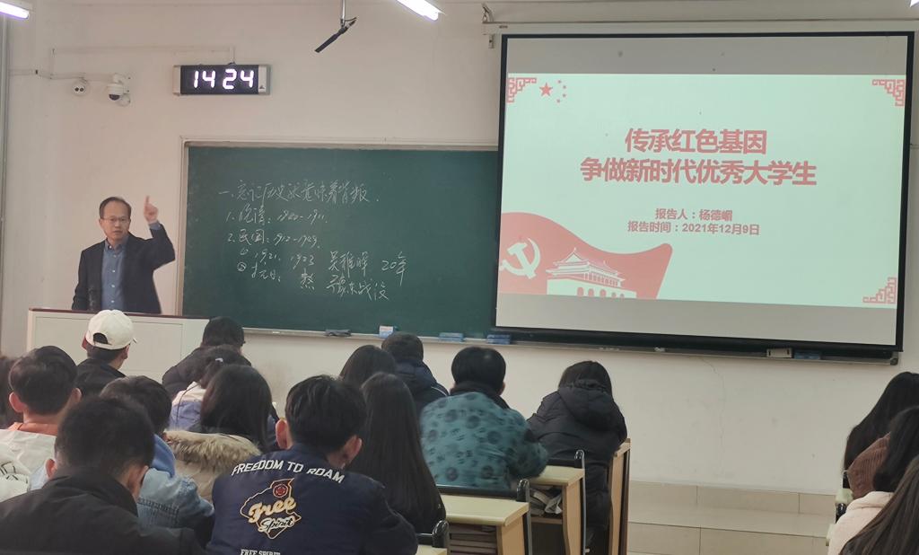 12月9日下午,我院党委副书记杨德嵋为2021级少数民族预科班同学讲授“传承红色基因 争做新时代优秀大学生”党史教育课。