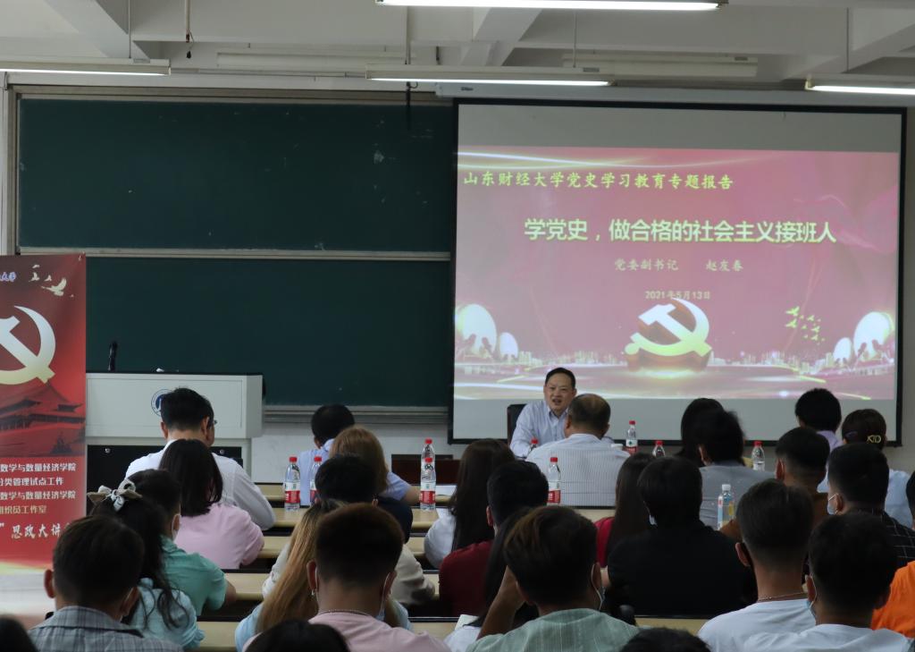 5月13日下午,校党委副书记赵友春在圣井校区3238教室以《学党史,做合格的社会主义接班人》为题,为我院少数民族学生上了一堂党史学习教育课。党委宣传部、党委学生工作部、圣井校区管理办公室和数学与数量经济学院相关负责同志参加。主题讲座由党委学生工作部部长王剑主持。