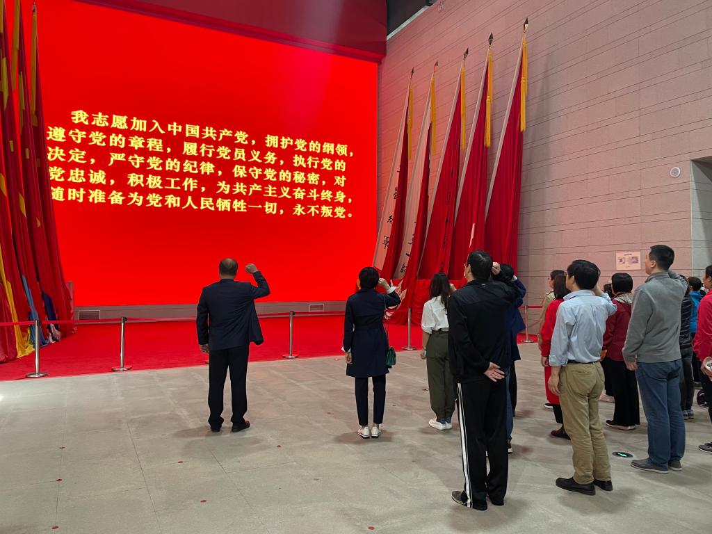 29日上午,学习班来到位于中国山东省枣庄市薛城区临山路东首的铁道游击队纪念公园,实地学习了八路军“一一五师苏鲁支队”以薛城为中心,挥戈于百里铁道线上,出没于万顷微山湖中,依靠群众,开展游击战术,与日本侵略者展开浴血奋战,奏响了民族救亡的最强音。参观之后,全体教工党员举行了重温入党誓词活动。