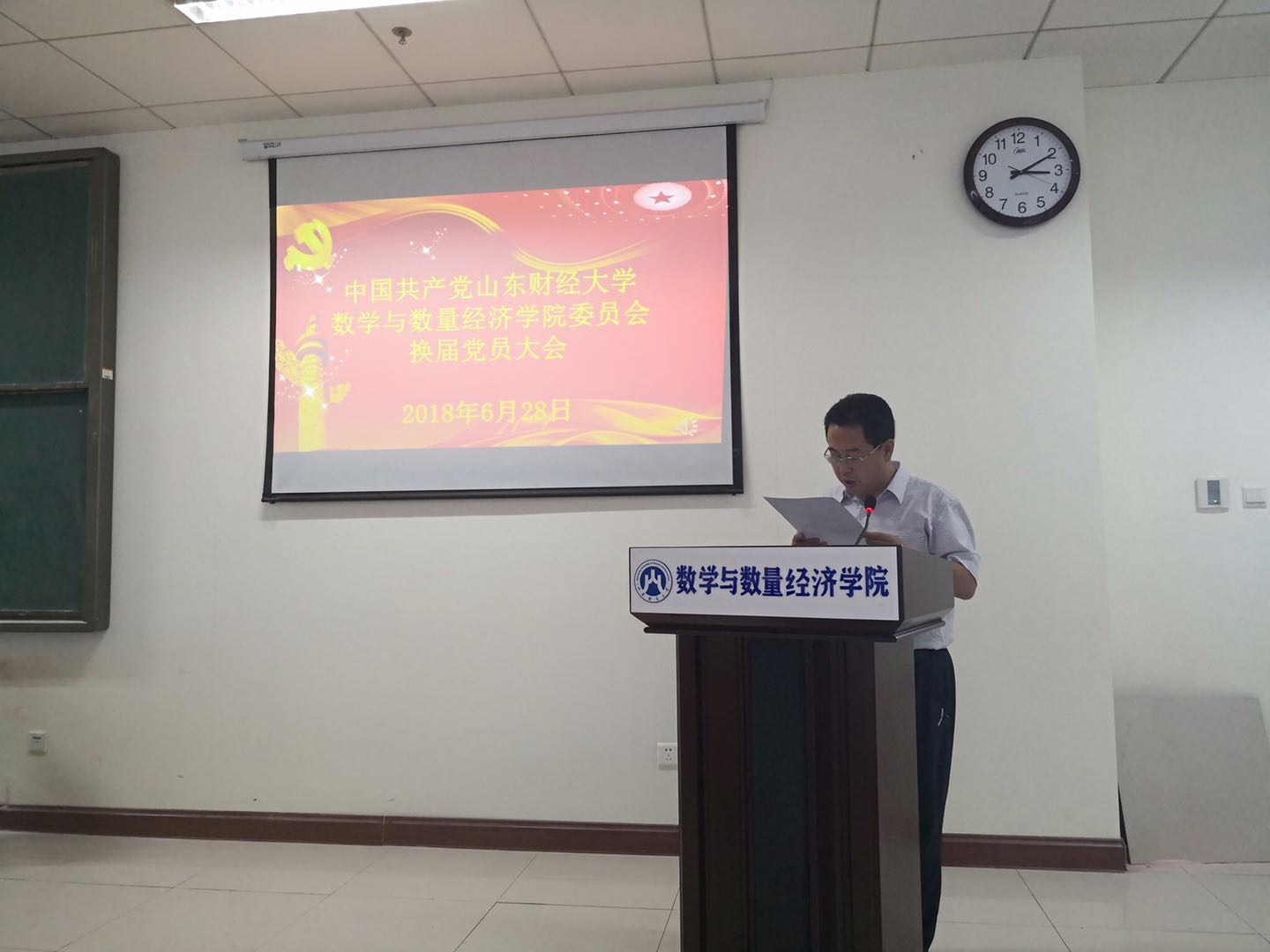 6月28日下午2:30,中共山东财经大学数学与数量经济学院委员会换届党员大会在实验楼507室举行。会议在庄严的《国际歌》中拉开帷幕,本次会议第一阶段由我院院长、党委副书记安起光同志主持。