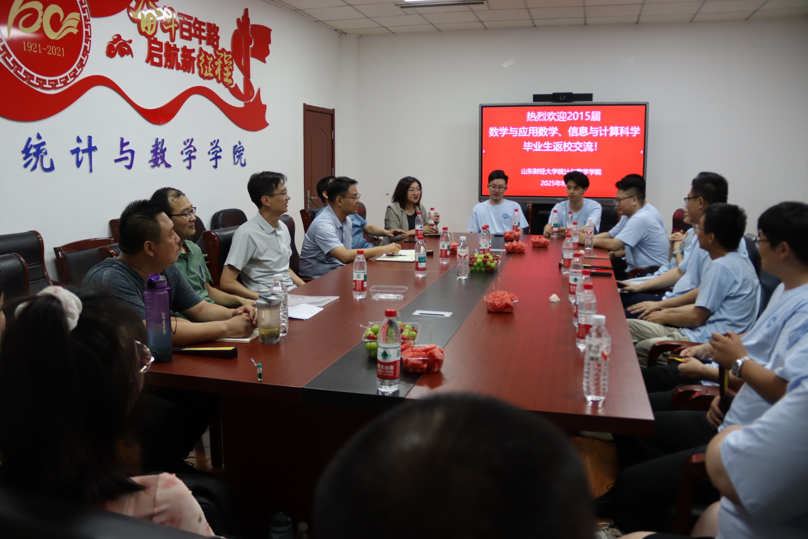 下午,校友座谈会在舜耕校区统计与数学学院会议室举行。马克思主义学院党委副书记王昊天、统计与数学学院刘太琳、王继强、任敏、姚宝奎等教师代表应邀出席,与校友们共叙师生情谊,副院长郭洪峰主持本次座谈会。